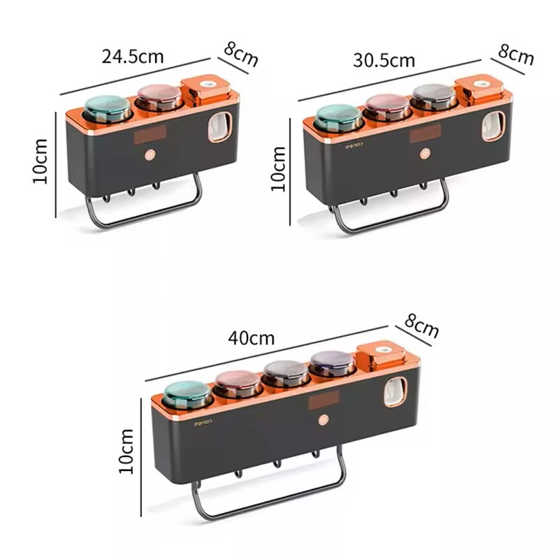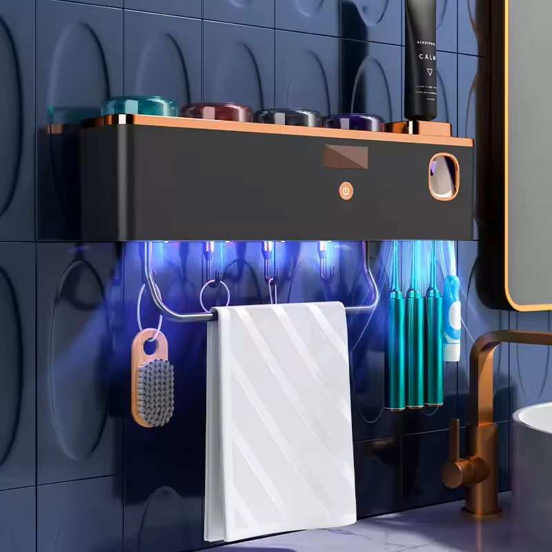 Revoluționează-ți igiena orală cu suportul de perete SMART pentru uscare și sterilizare! Un singur dispozitiv pentru o baie curată și dinți perfect sănătoși! Acest suport de perete SMART pentru periuțe de dinți este mai mult decât un simplu suport. Este un centru complet de igienă orală, perfect pentru doi-trei sau patru membrii ai familiei! Funcții inovatoare: